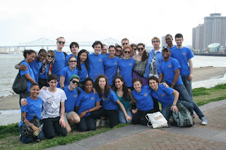 We came down from this high as we traveled to the Lower 9th Ward, a portion of New Orleans still seeing the effects of Katrina. We drove through at night, and the juxtaposition of the houses which haven't been touched in close to 6 years with the other houses built by the Make it Right Foundation - Brad Pitt's eco-friendly and futuristic venture - was jarring. Remnants of spray painted X's on the walls of damaged houses with water lines are reminders of the fatal nature of Katrina. As we rode in silence, our purpose for coming to Louisiana became a reminder for returners on the trip and an undeniable reality for the new members of the team. The culmination of this experience occurred when we passed by the completed home we help built last year. A woman sat on the front porch reading - most likely vexed by the two large white vans that slowly drove past.
